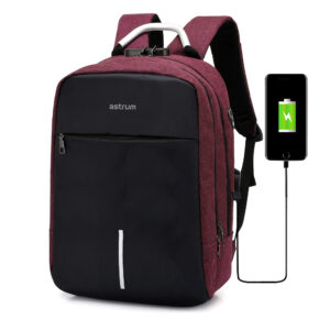 0.00$Laptop Backpack built for up to 15 inch laptops, with USB charging port, multi pockets and compartments. Made from Nylon + PU stylish material.