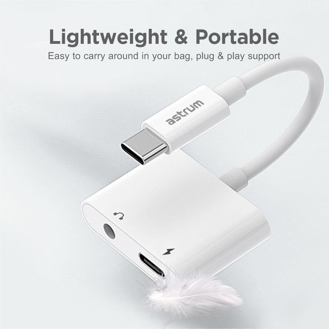 Lightweight and portable USB-C male to USB-C + Aux female stereo adapter