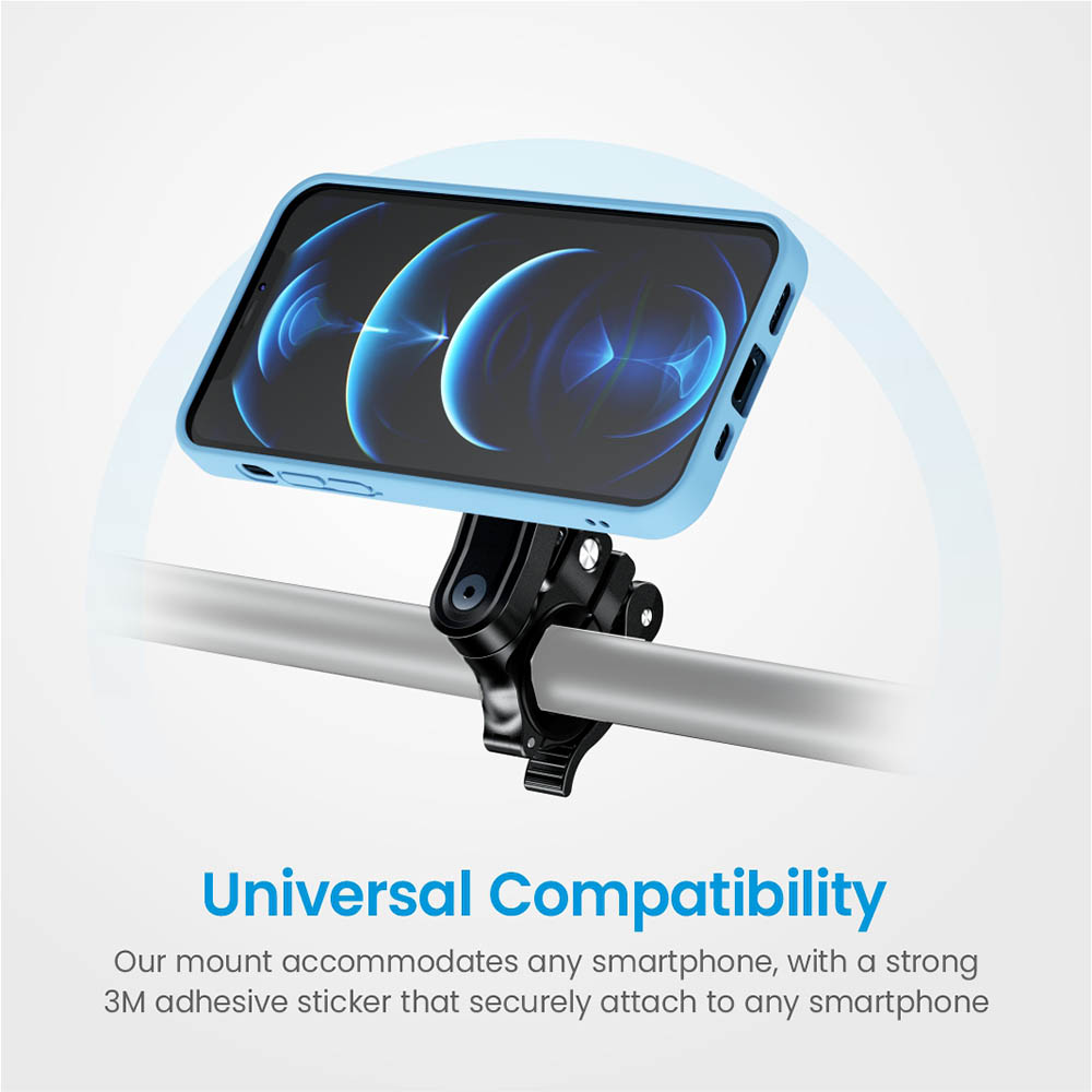 Universal motorcycle and bike mount, quick release, ultra lock adhesive, 360 rotate, for any mobile device.