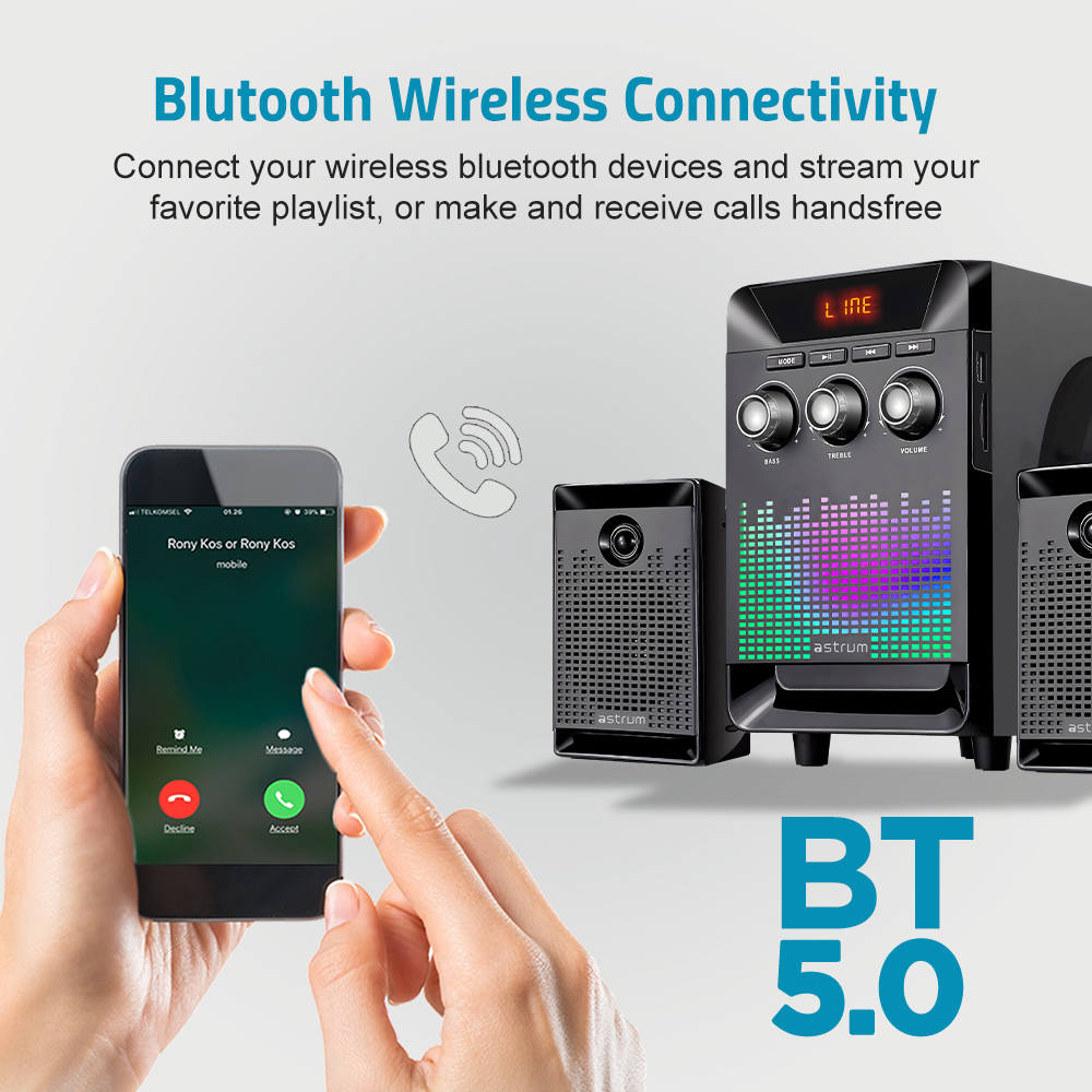 Featuring Bluetooth 5.0, this speaker system allows fast, stable wireless streaming from your smartphone, tablet, or other Bluetooth-enabled devices, ensuring smooth playback with extended range.