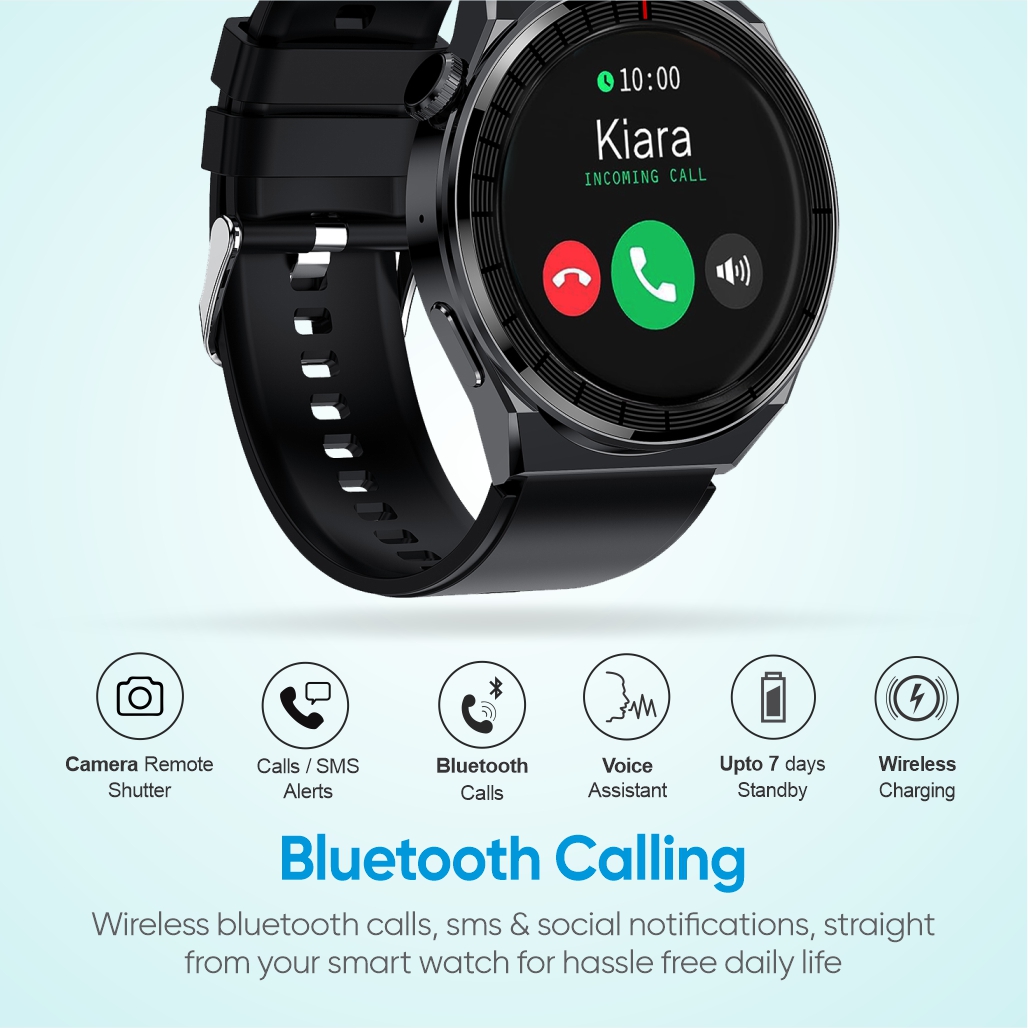 1.52″ HD touchscreen fitness tracker smartwatch, up to 7 days battery life, calls/SMS, wireless charging.