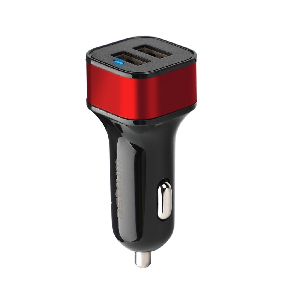 Compact 2 x USB fast car charger with 5V 4.8A total output for all smart devices, elegant aluminum head, and smart over-charge protection IC.