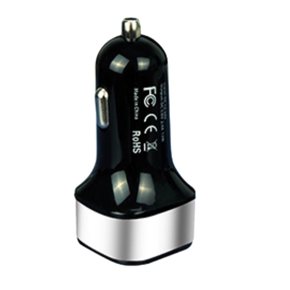 Compact 2 x USB fast car charger with 5V 4.8A total output for all smart devices, elegant aluminum head, and smart over-charge protection IC.