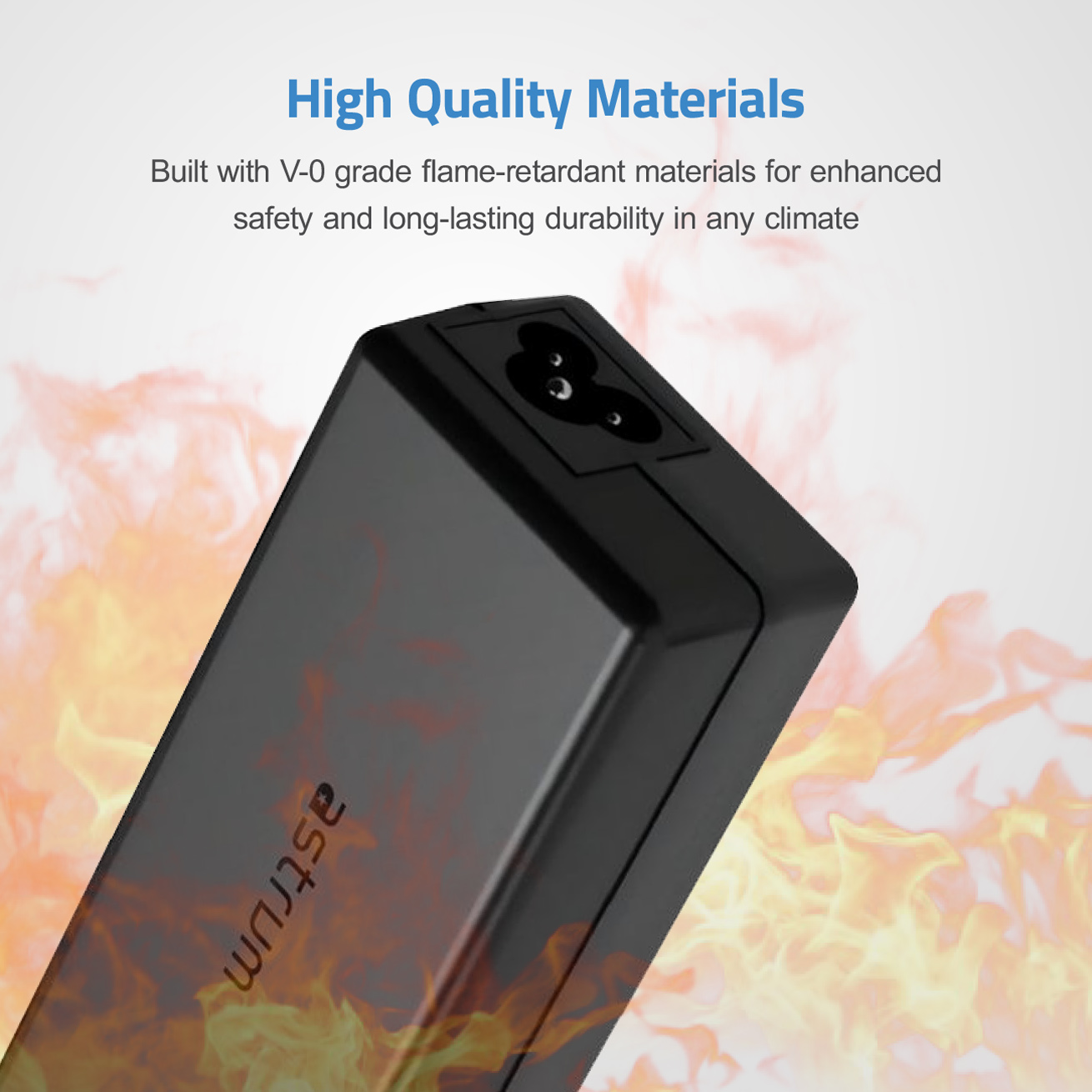 High performance charger for laptops/iPad/Mac/Android, fireproof plastic, smart IC, multi-level protection.