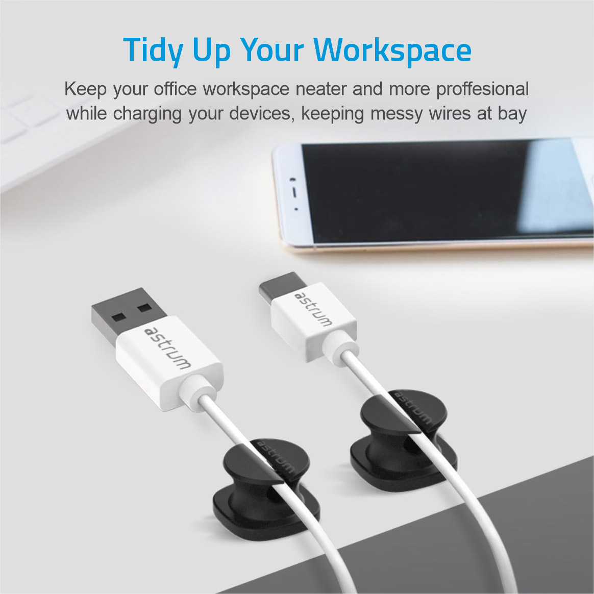 Organize your cables effortlessly with Astrum CO060 mini cable organizer clips. Ideal for home or office use.