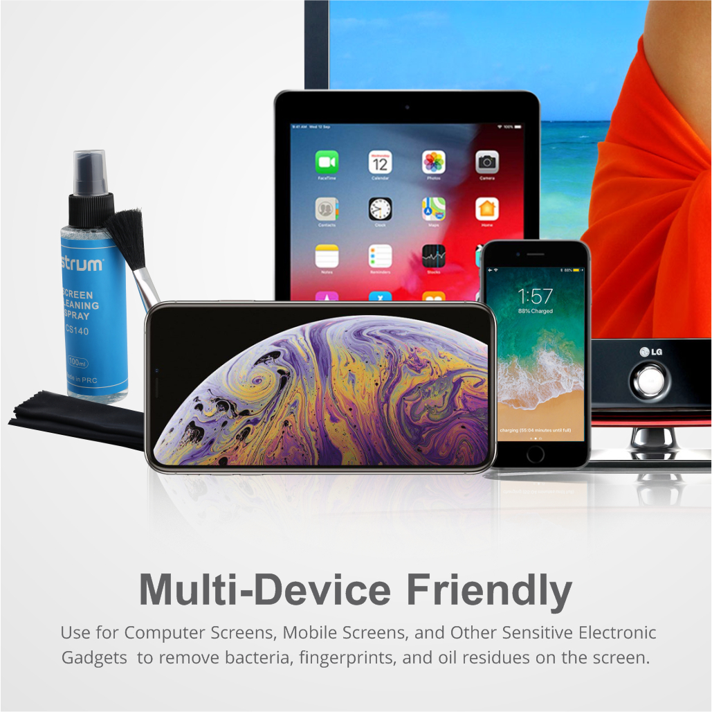 Reusable, Ultra-soft microfiber cloth, Cleans without any Scratches or Damage. Spray the non-aerosol cleaner and wipe up the devices for bright clarity of screen and fragrance.