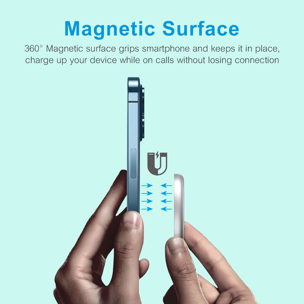 An effortless charging experience CW500 is easy to use due to the 360° Magnetic surface which grips smartphone and keeps it in place, ensuring you charge up your devices while on calls without losing connection, USB-C powered for easy insertion to your wall chargers or laptop.