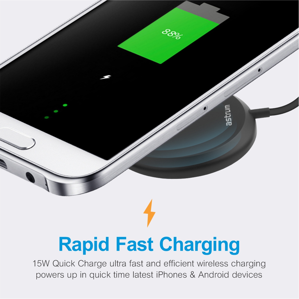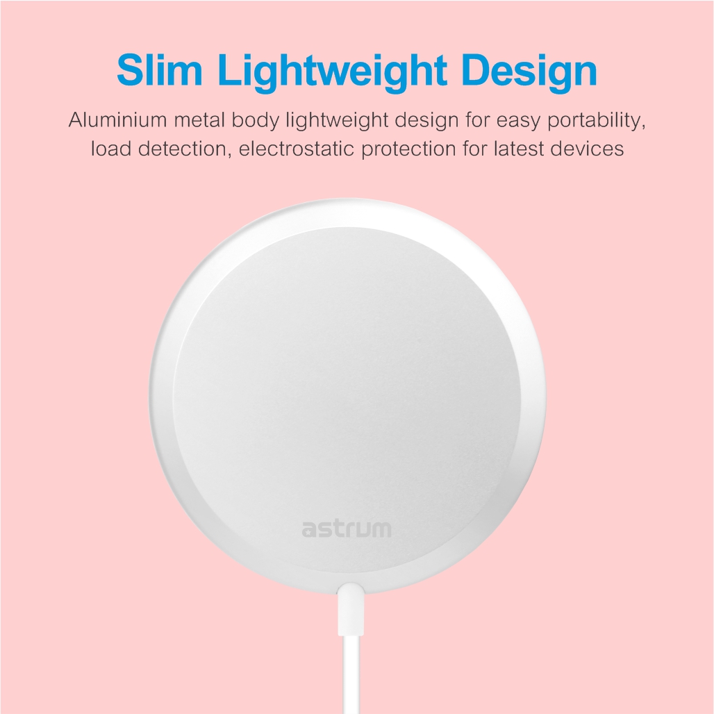 Experience top-notch ultra fast and efficient charging day and night with Astrum CW500 15W magnetic wireless charger. Power packed wireless induction charging for latest Apple iPhones 12 series and latest released Android smartphones.