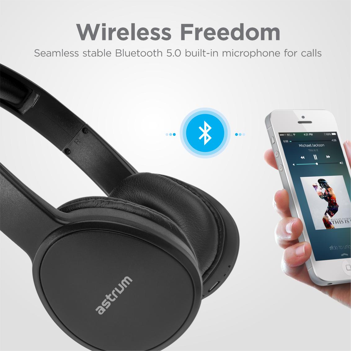 Lightweight foldable wireless bluetooth V5.0 noise isolating headset with built-in microphone, on-ear design, upto 8 hours playtime.