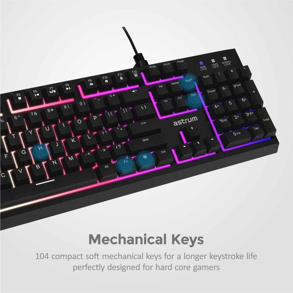 A standard full size gaming mechanical keyboard, built to make you win your every move effortlessly with its FN + customizable keys ensuring that every keystroke registers, no matter how fast you play.