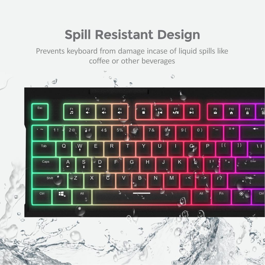 Full sized slim gaming keyboard with soft touch mechanical keys, spill resistance, RGB LED backlit, adjustable legs and mechanical switch built for intense gamers.