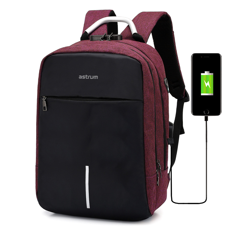 Laptop Backpack built for up to 15 inch laptops, with USB charging port, security lock and multi compartments.