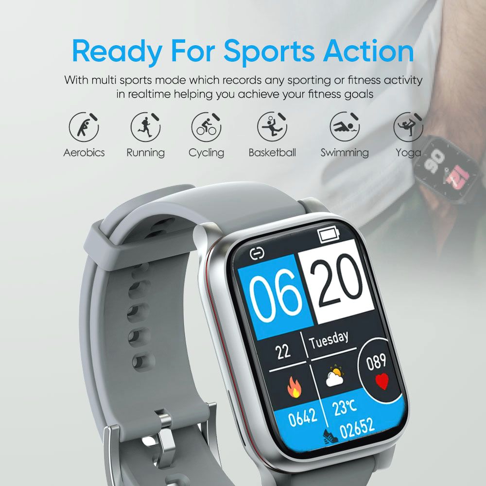 1.91″ HD touchscreen fitness tracker smartwatch, up to 10 days battery life, calls/SMS alert, IP67 waterproof.