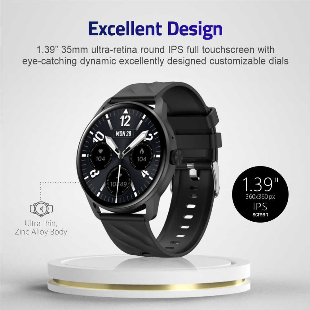 Featuring a 1.39” 35mm ultra-retina HD IPS full touchscreen with 360 x 360px resolution, it offers intuitive navigation through taps and swipes. Hassle-free OTT firmware updates ensure the device remains up to date for a smooth user experience.