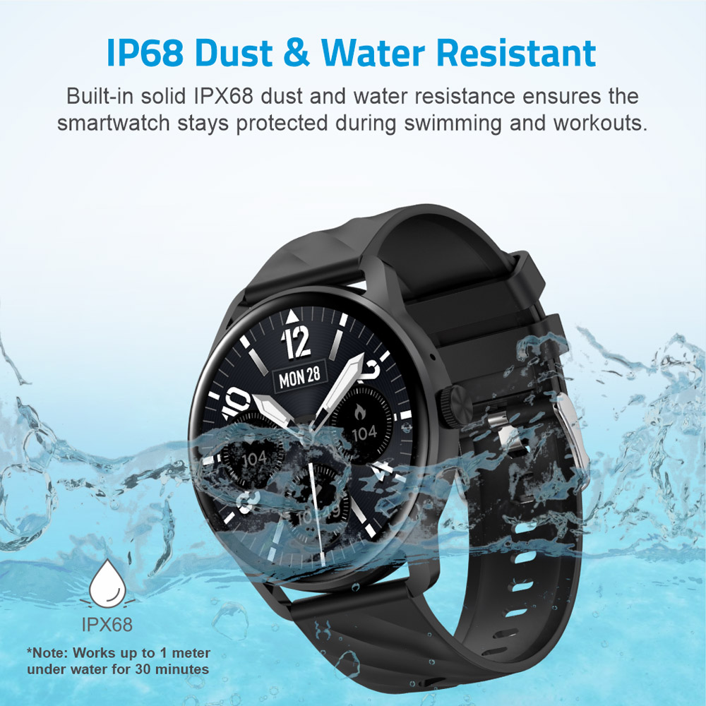 1.39” HD IPS touchscreen fitness tracker smartwatch, up to 6 days working (W/O calling), calls/SMS, IPX68.