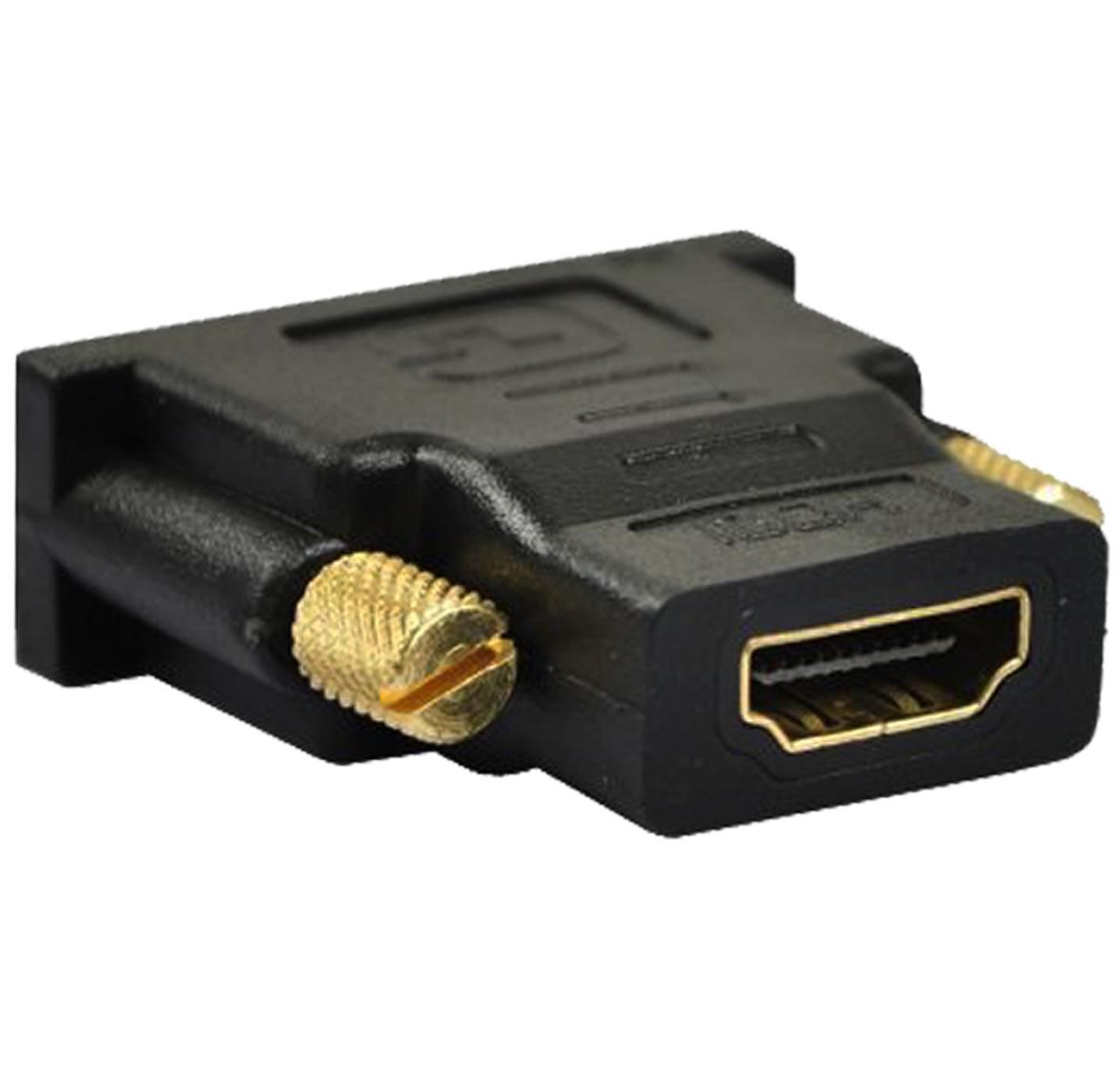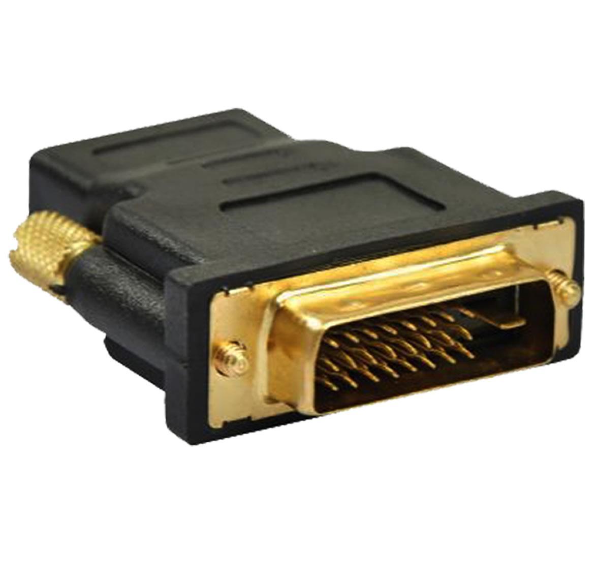 Quality DVI-I 24+1 pins male to HDMI female converter that converts a DVI-enabled computer to HDMI, 1080 full HD support, screw-in design for secure connection.