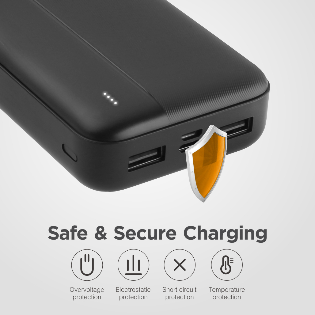 Built for safe charging, its built-in smart chip protects the power bank and your devices against over-voltage, over-temperature, over-current and short-circuit damages.