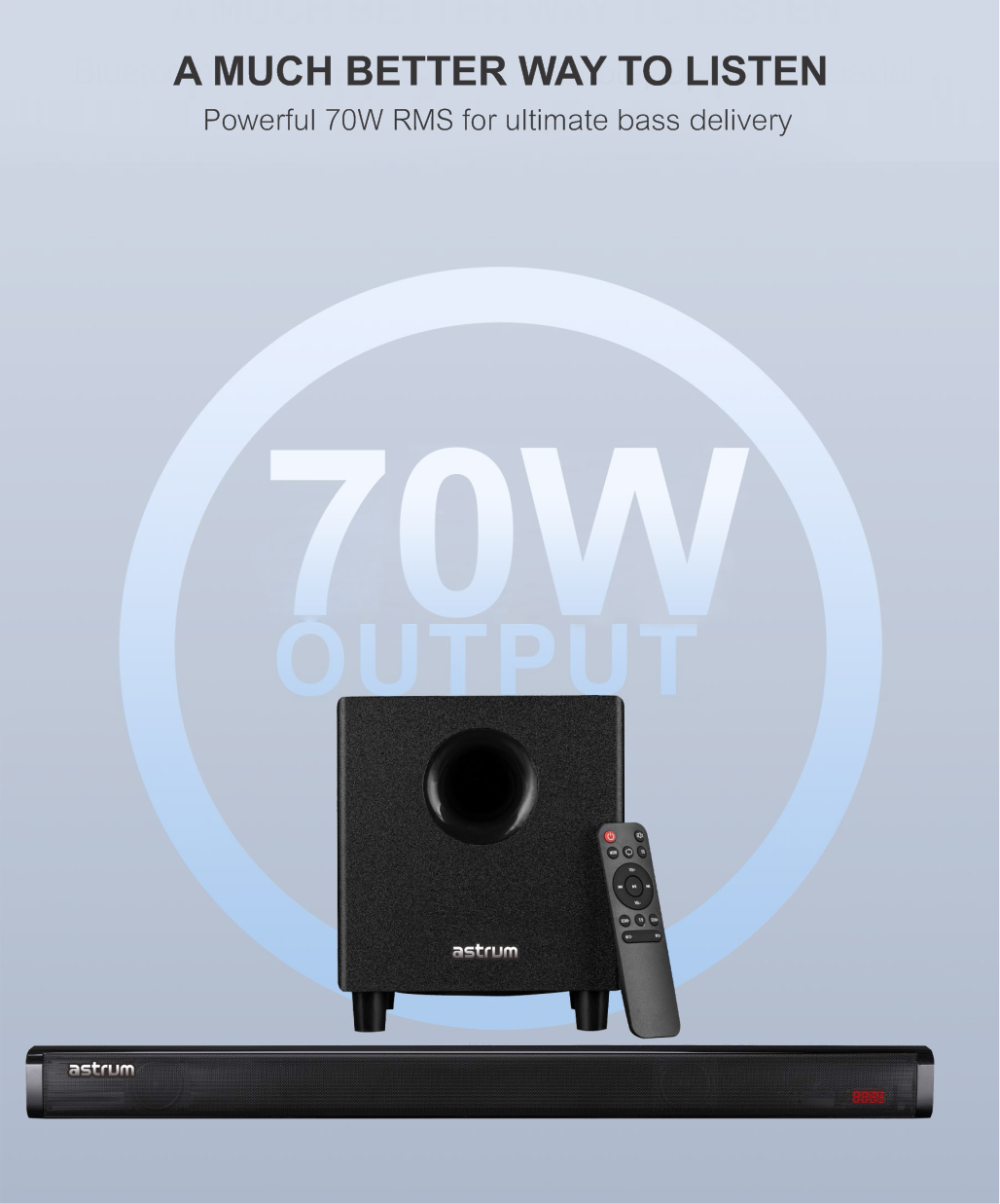 Powerful 70W (Max.) RMS for ultimate bass delivery and crystal clear audio