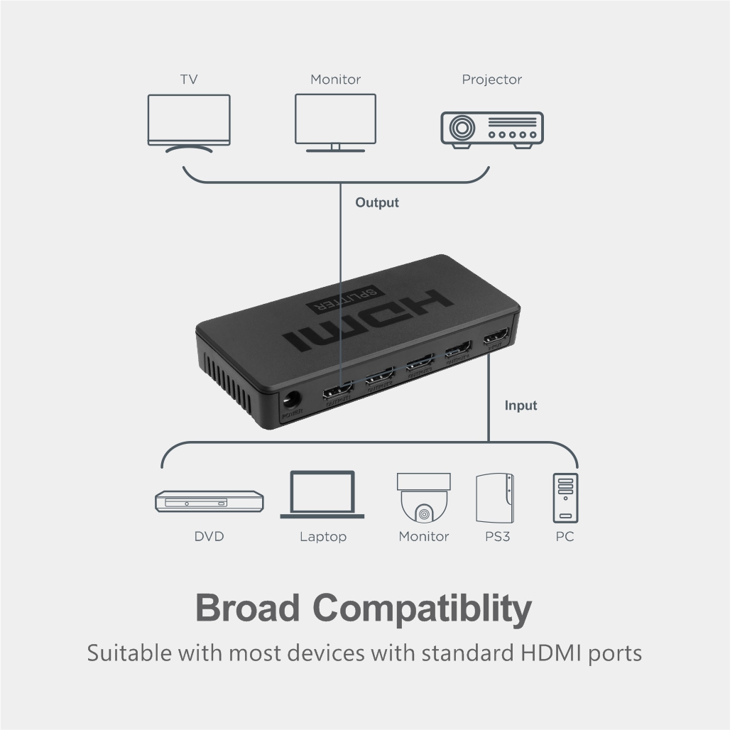 This best high performance HDMI Splitter can easily duplicate, extend or broadcast multiple display from 1 input source to multiple display output for a brighter more vivid display options.