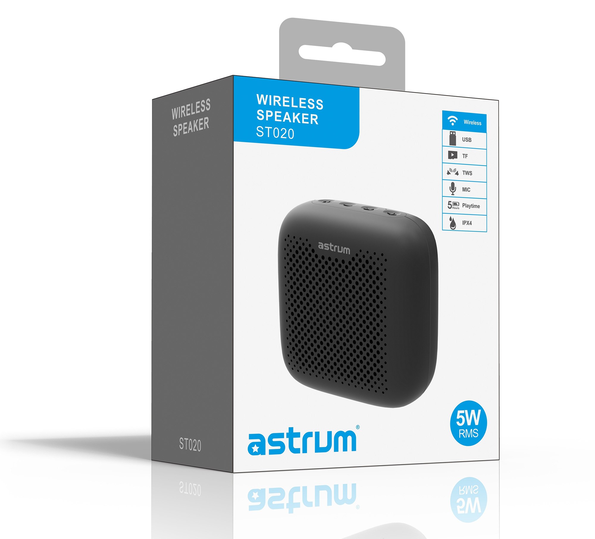An ultra-portable mini wireless speaker with a smooth ABS outer layer and lanyard ST020 is super easy to carry around fitting right in your palms, and packing a loud punch and impressive bass, keep it on your desktop for work music or carry it with you on your hiking trail this speaker is perfect for any moment of music trill.