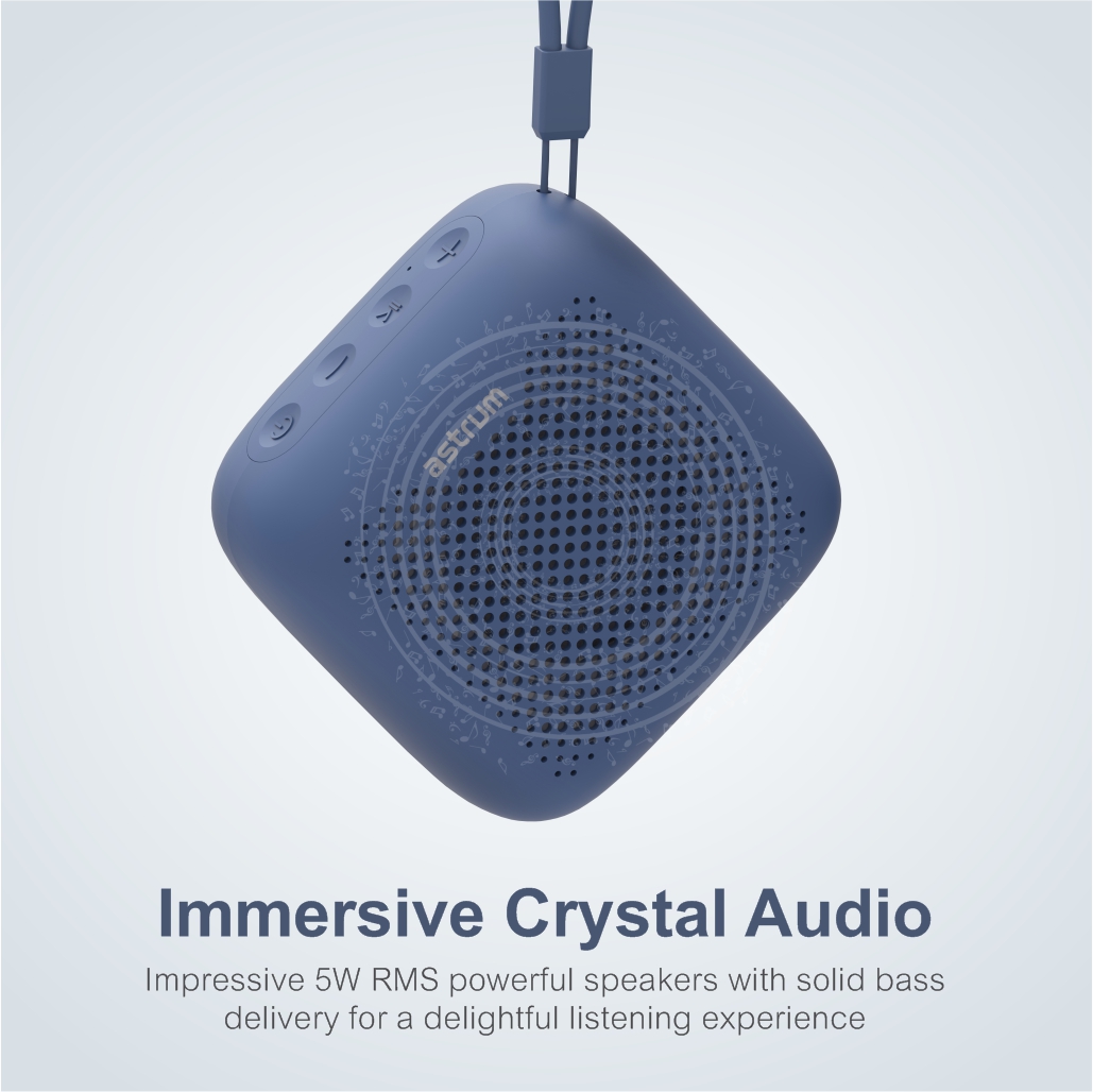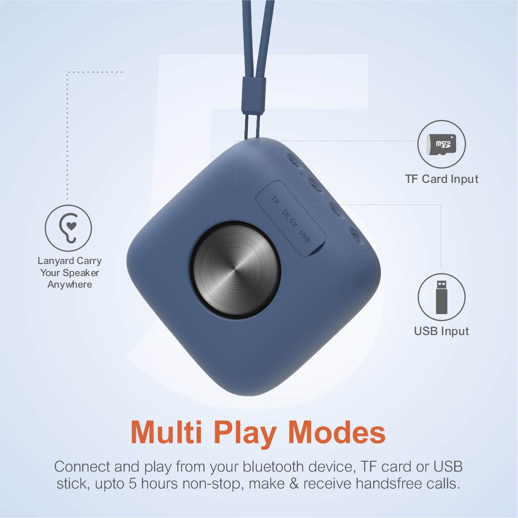 Portable true wireless mini speaker, 5W RMS, IPX5 water resistant, TWS interconnection, TF, USB, 5hrs tunes.