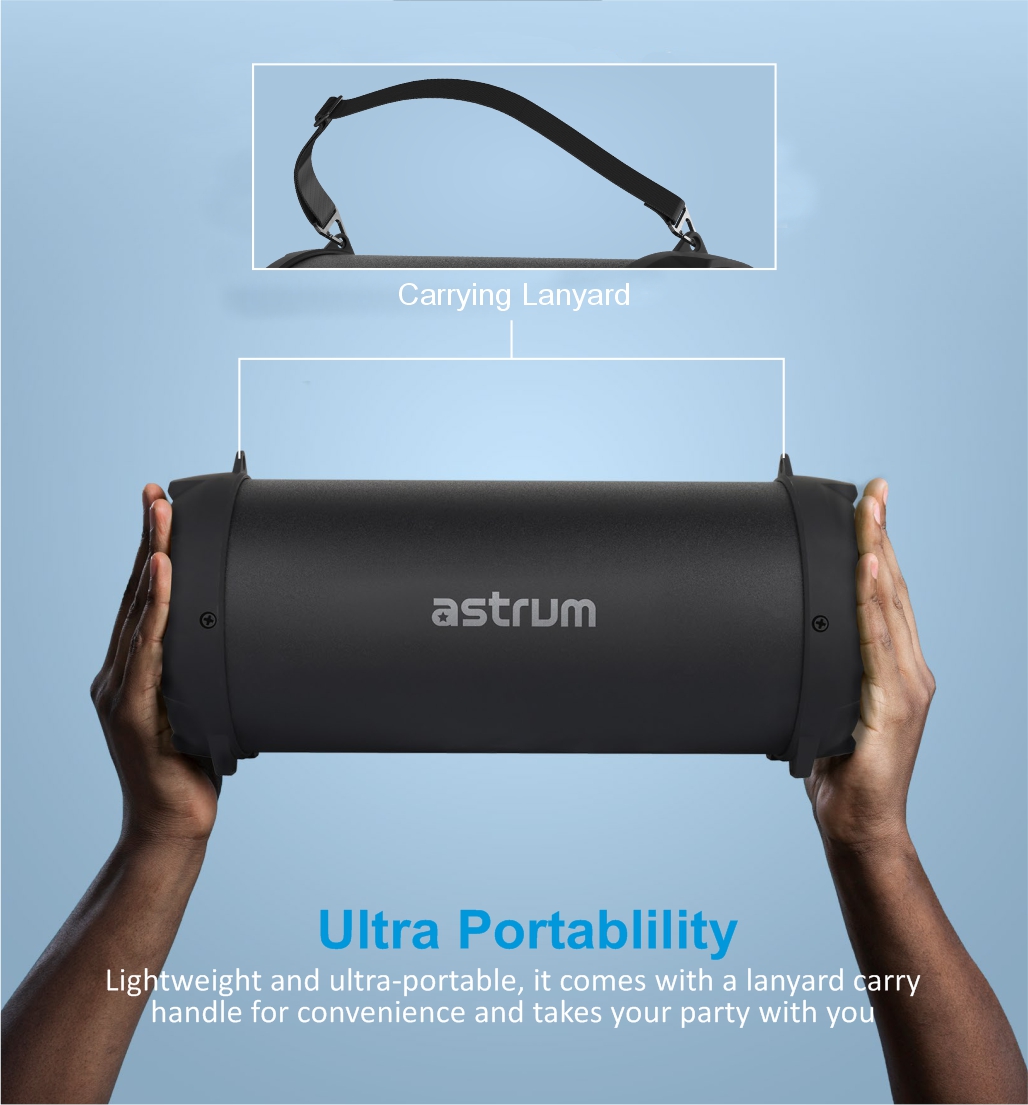 Bring on the power of music in compact barrel shape design with a powerful speaker providing even sound distribution, maximizing efficiency. The simple but rugged lighweight construction and leather strap handle sets ST330 apart from the rest, making it a truly outdoor portable speaker.
