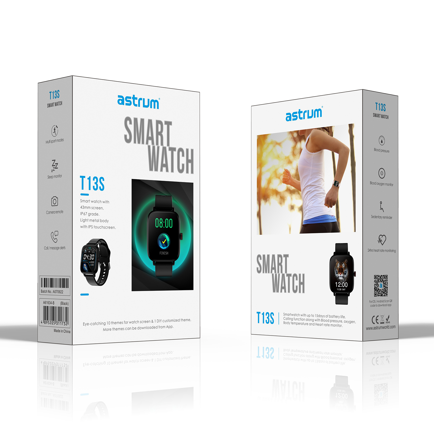 Astrum T13S bluetooth wireless smart sports fitness watch is a mix of distinctive crafting, bold fashion statement along with health monitoring functionality, featuring a 1.69″ 44mm HD touch screen for easy use and navigation.