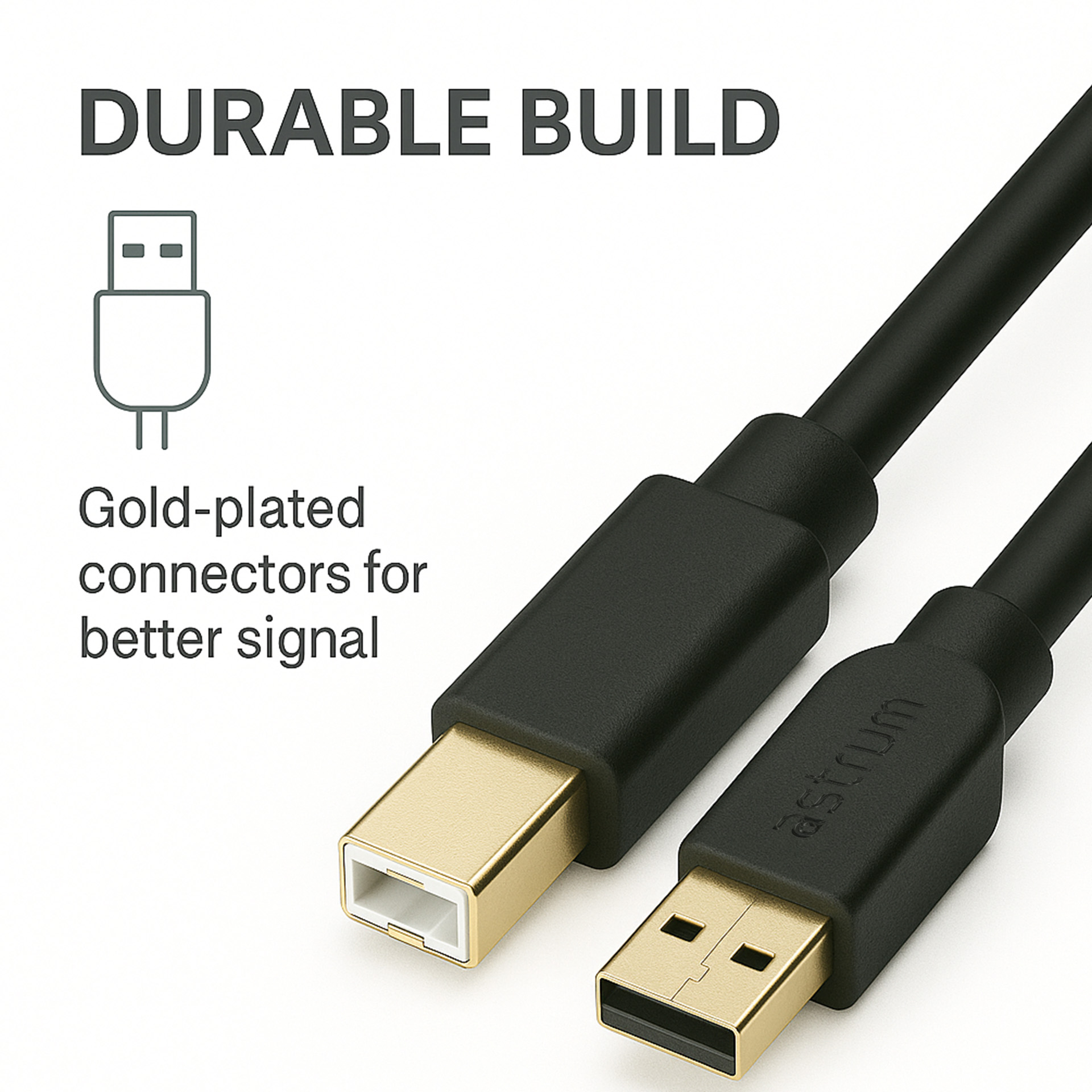 With its capability to transfer data at speeds up to 480 Mbps, this cable guarantees swift and efficient communication between your devices, reducing wait times and enhancing productivity. The robust USB 2.0 AM (Type A Male) to BM (Type B Male) connectors provide a secure and stable connection, ensuring uninterrupted data transmission.