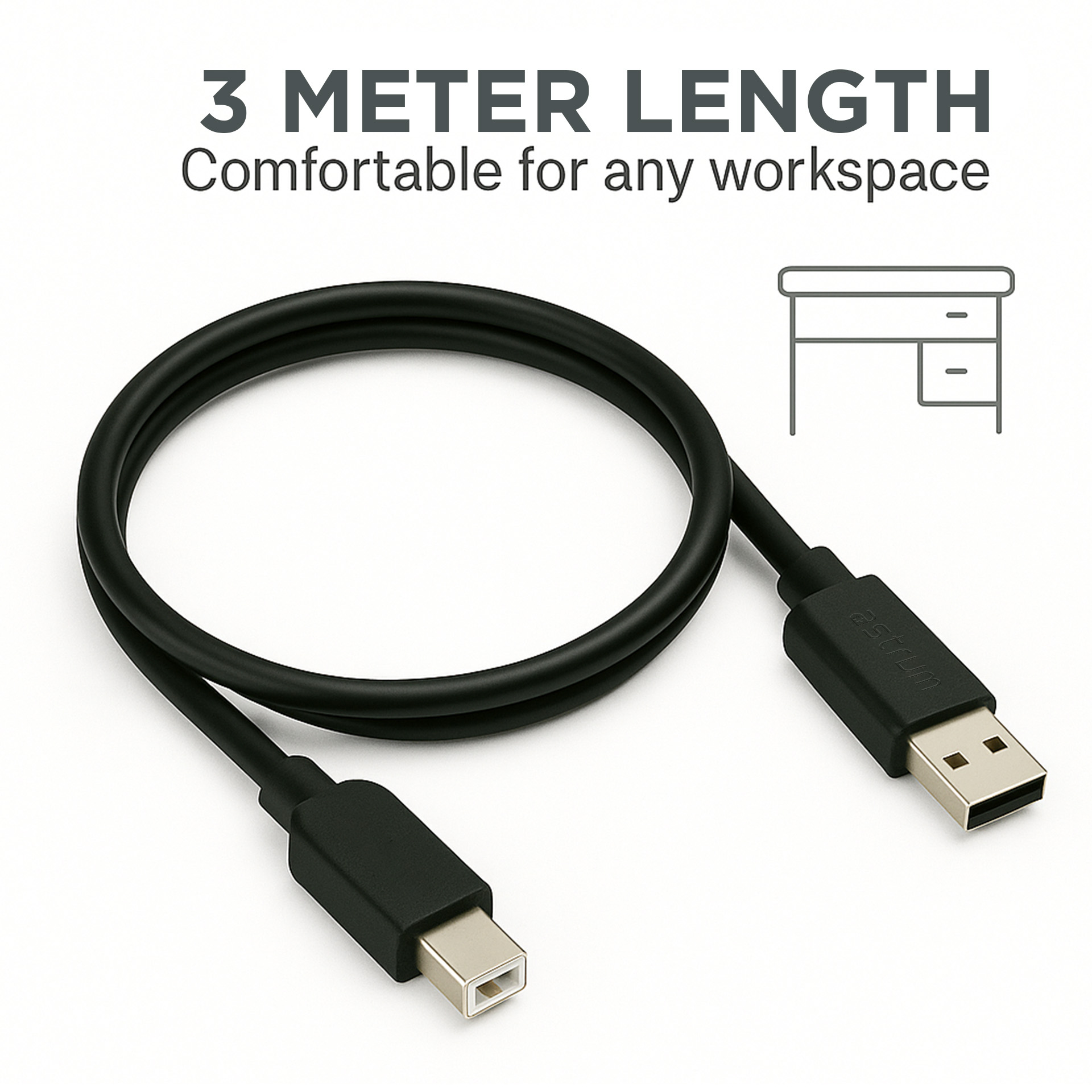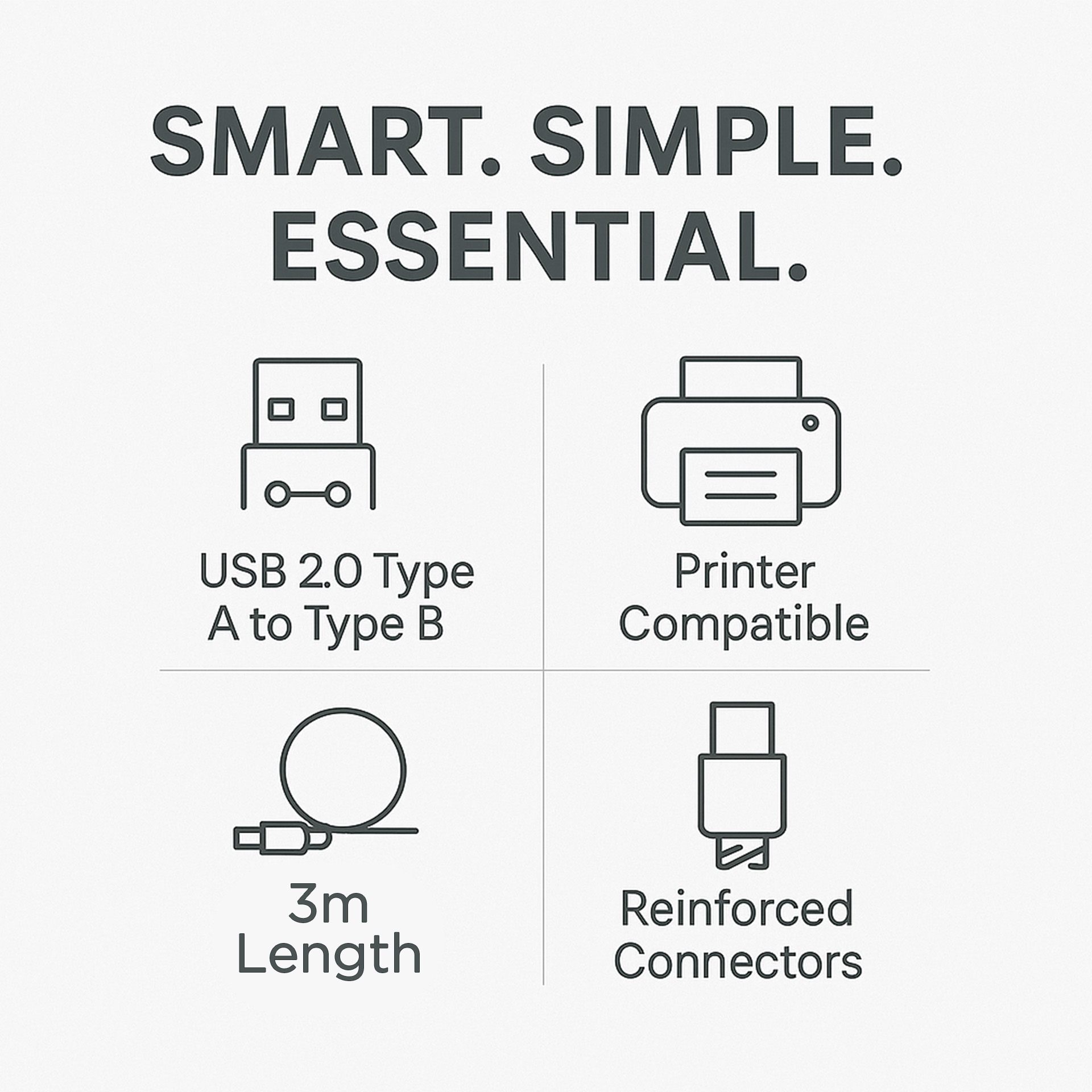 – Connectors: USB 2.0 AM to BM Printer Cable