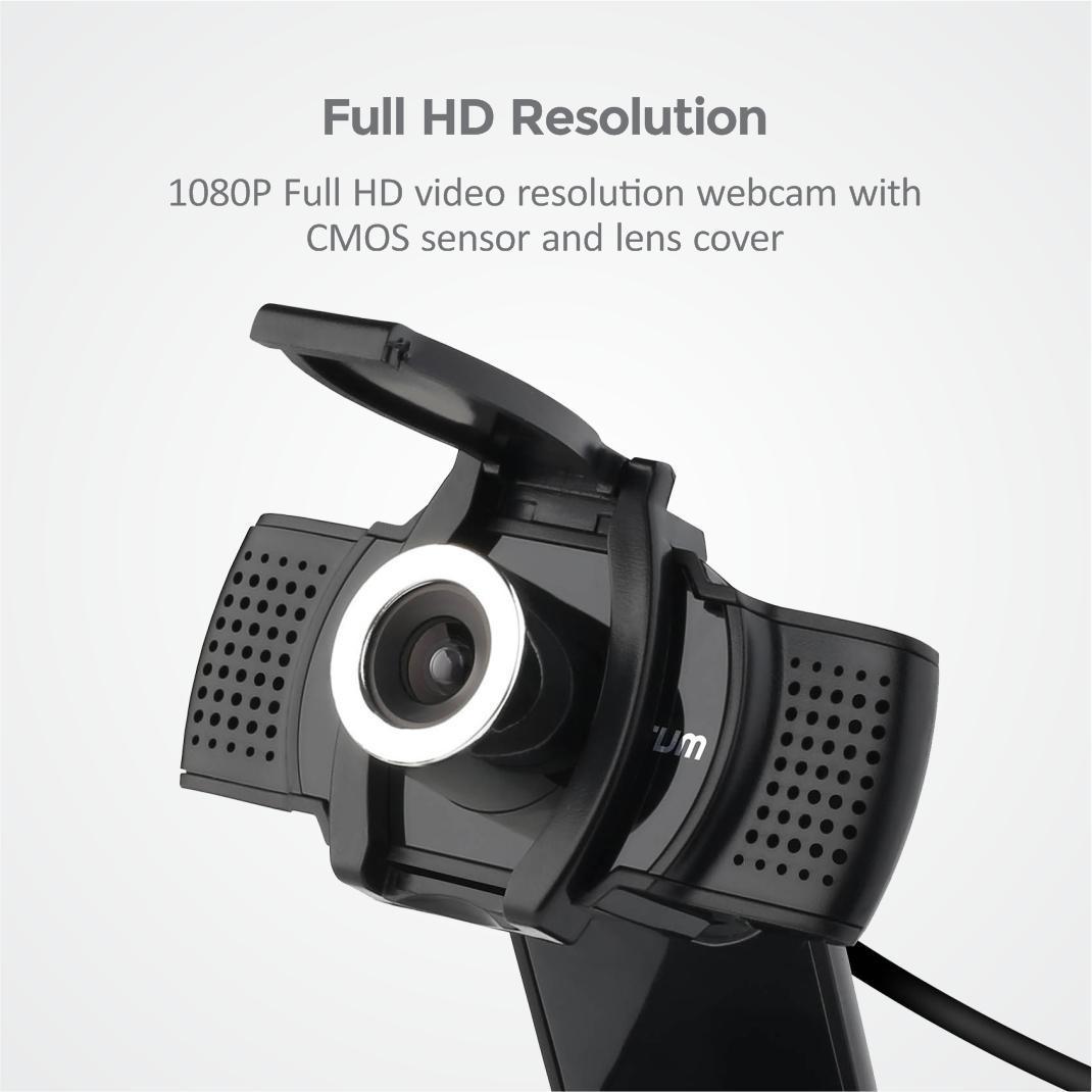 1080 full HD resolution webcam with Mic and lens cover for privacy, high quality audio and video with auto-adjustment for excellent video calls.